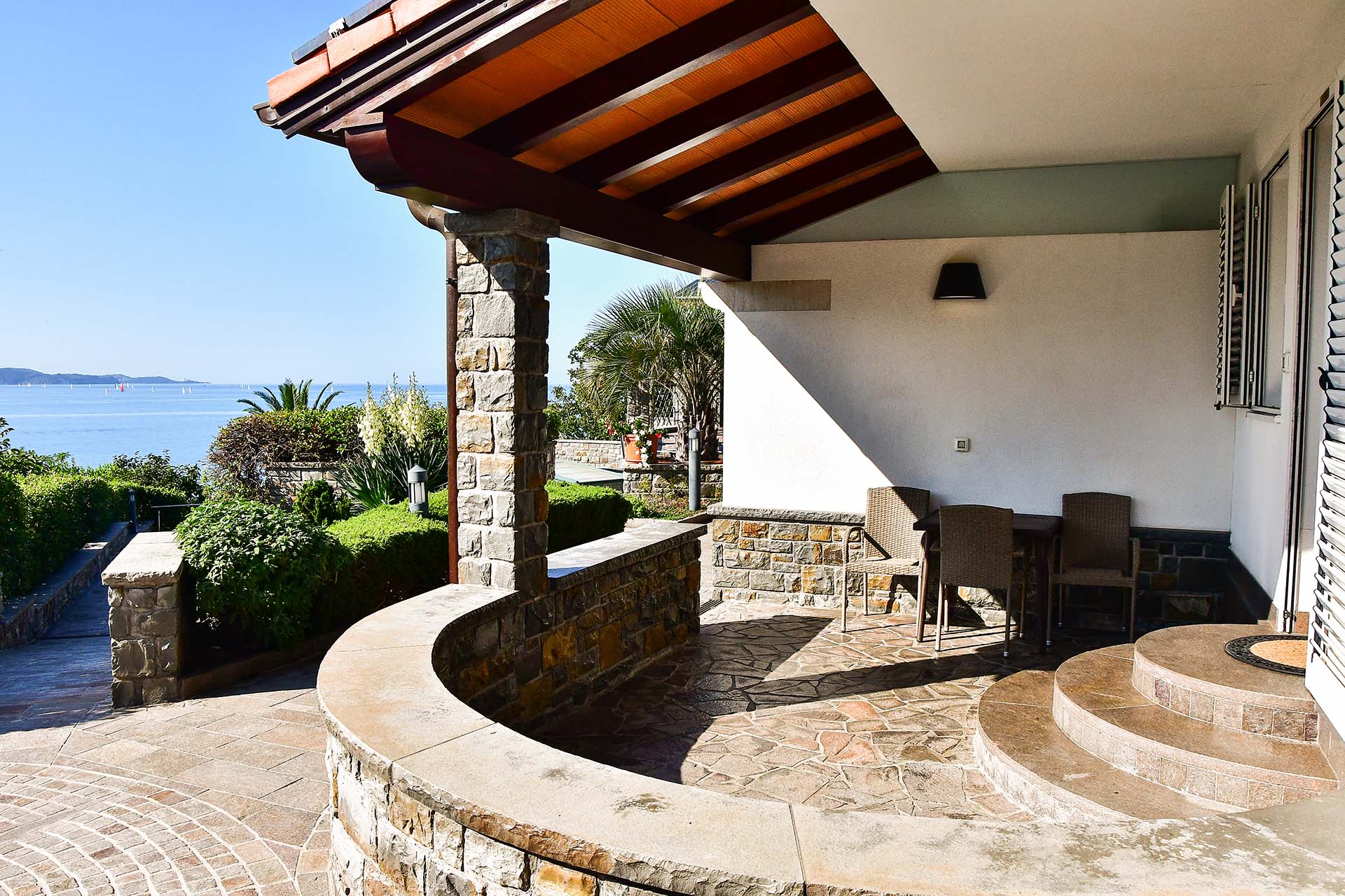 Apartmaja v izmeri 32m2 za dve osebi (z možnostjo priprave treh ležišč). Kuhinja ima hladilnik, napo in 2 steklokeramični plošči. V apartmaju je TV, internet, klima. Apartmaji so v pritličju, vsak ima 12m2 veliko teraso s pogledom na morje. Ob apartmajih so bazen z ležalniki, tuš, parkirišča (tudi pokrita). Dostop do plaže cca 2 min.